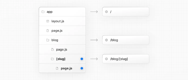 嵌套路由是由多个 URL 段组成的路由。例如, /blog/[slug] 路由由三个段组成: